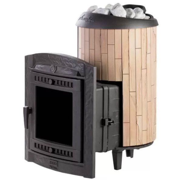 Практичная и компактная модель. Ламели из окаменевшего дерева по периметру внешней каменки не только обладают хорошими теплонакопительными свойствами, но и придают печи оригинальный внешний вид. Модель с усиленной каменкой.
