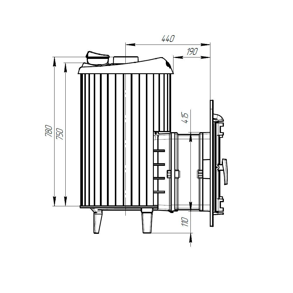 Масса печи с ламелями 206 кг