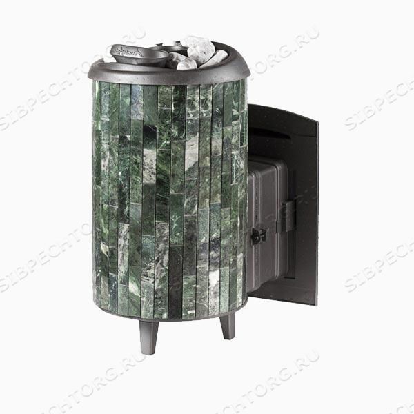 Печь «Атмосфера L» в облицовке Змеевик встраивается в стену, и с лицевой стороны имитирует дверцу камина. Задняя часть размещается в парилке, и облицовывается натуральным минералом – Змеевиком (серпентинитом). Такая конструкция отличается не только энергоэффективность, но и экологичностью. Так, натуральный камень не выделяет токсины при нагреве, и равномерно распределяет тепловую энергию. Одной закладки дров вполне хватит на 3-4 часа непрерывной работы, а для ее продления достаточно подбросить в топку 1-2 небольших полена. С какой точки зрения ни посмотреть, печь «Атмосфера L» – это лучший выбор для бани: и по эффективности, и по простоте использования, и по соотношению «цена/качество»!