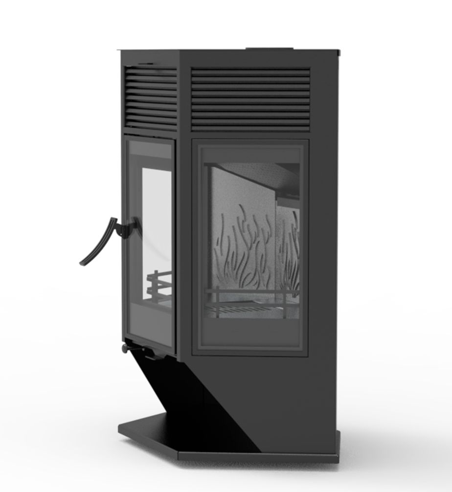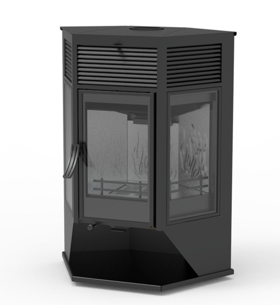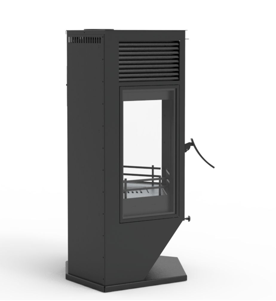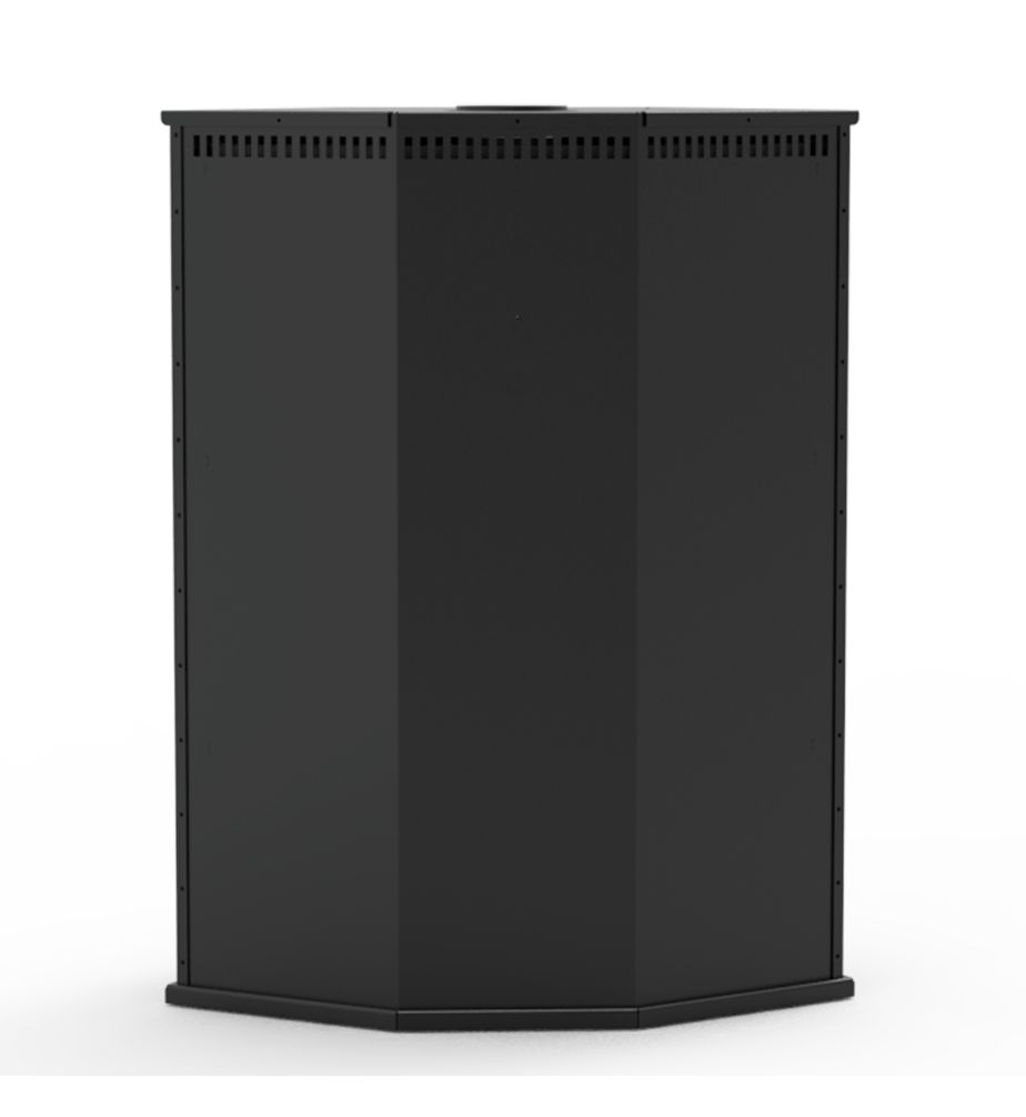 Корпус стальной. В боковые стенки и точную дверку встроены термостойкие стёкла. Такое остекление топочной камеры позволяет наблюдать за горением топлива с трёх сторон