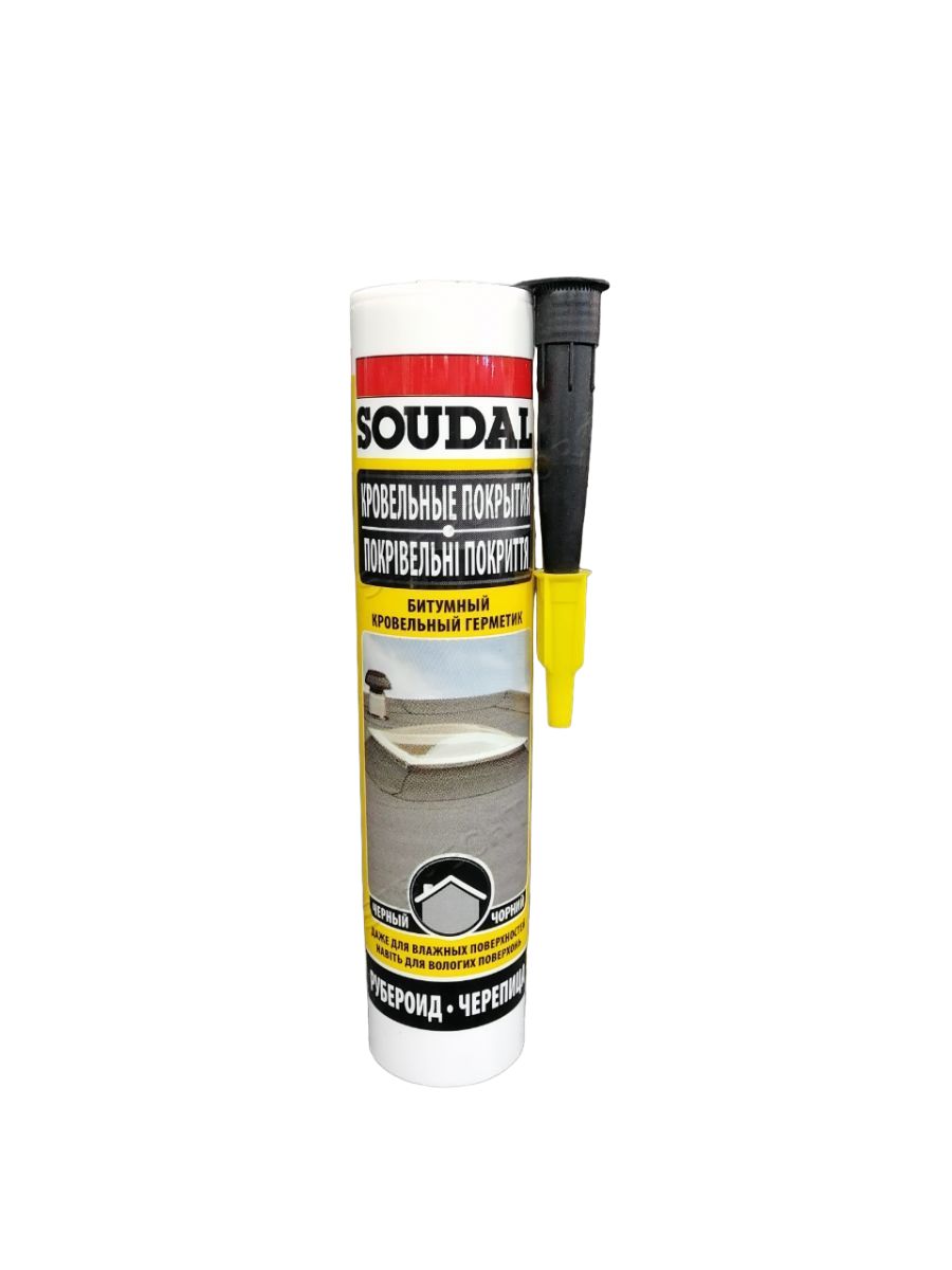 Герметик кровельный битумный Soudal - материал, применяемый для изоляции кровли. Позволяет провести герметизацию щелей в кровельных покрытиях и ремонт водосточных труб. Также используется для холодной склейки любых видов рубероида.