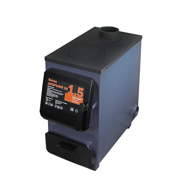 Котел «Добрыня» 10 предназначен для зданий, оборудованных системой отопления с естественной или принудительной циркуляцией. Отопительный котел может работать как в открытой, так и в закрытой отопительной системе и предназначен для длительного сжигания твердого топлива: неспекающихся видов каменного, бурого угля, пеллетов и дров.