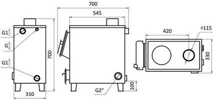 Максимальное рабочее давление воды в аппарате отопительном - 0,15 МПа