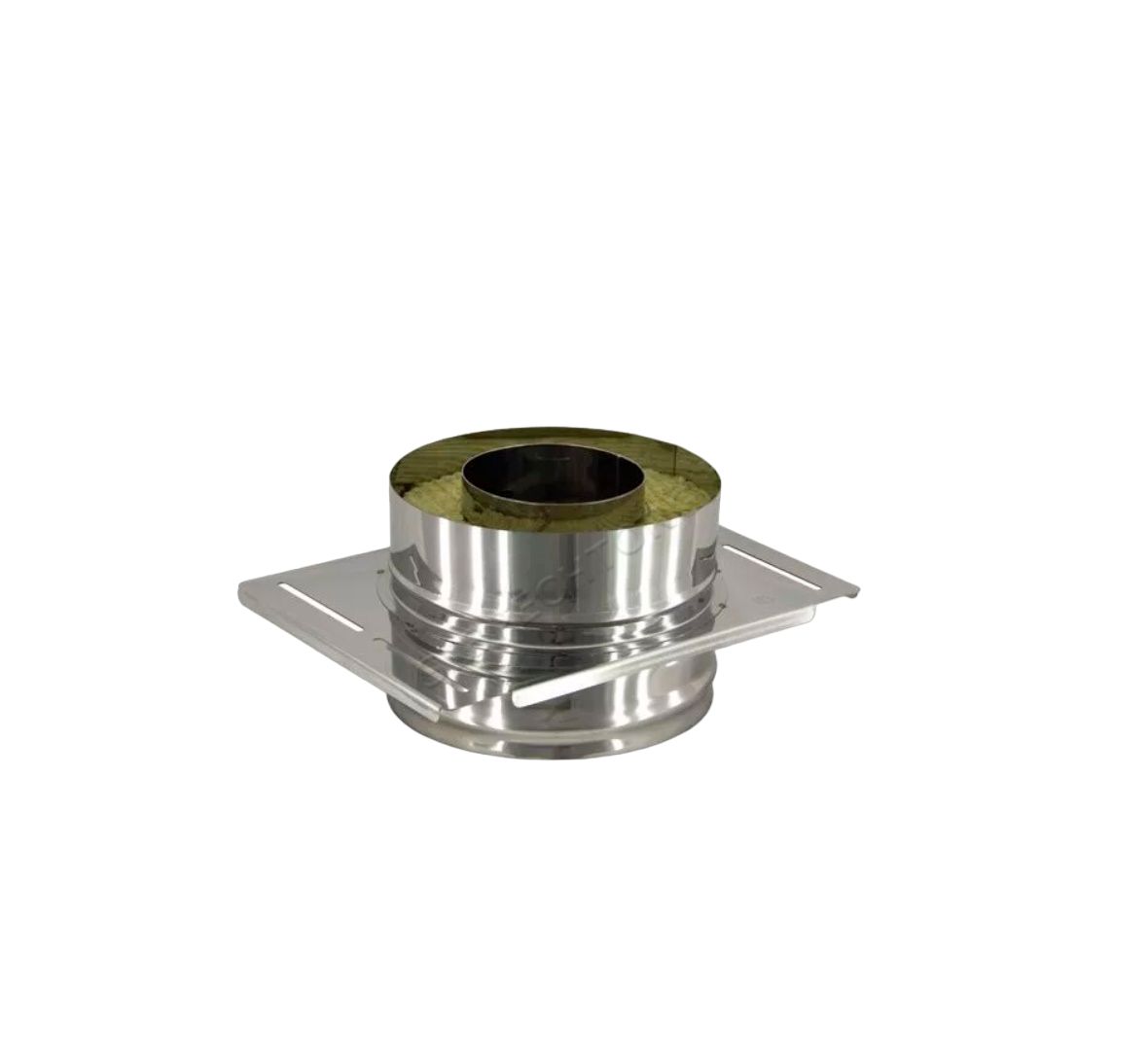 Монтажная площадка используется при установке сэндвич-дымохода. Опорный элемент надежно фиксирует конструкцию и перераспределяет нагрузку. Монтажная площадка закрепляет дымоход, поддерживая его конфигурацию, и переносит нагрузку монтируемых на ней модулей на несущую конструкцию.