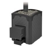 Внешний вид печи для бани с чугунной топкой «Былина» выдержан в древнерусском стиле. В оформлении использованы угловые набойки с массивными заклепками, добротные широкие ленты металла окаймляют вместительную каменку, в орнаменте конвектора узнаются элементы художественной ковки и даже очертания звеньев кольчуги.