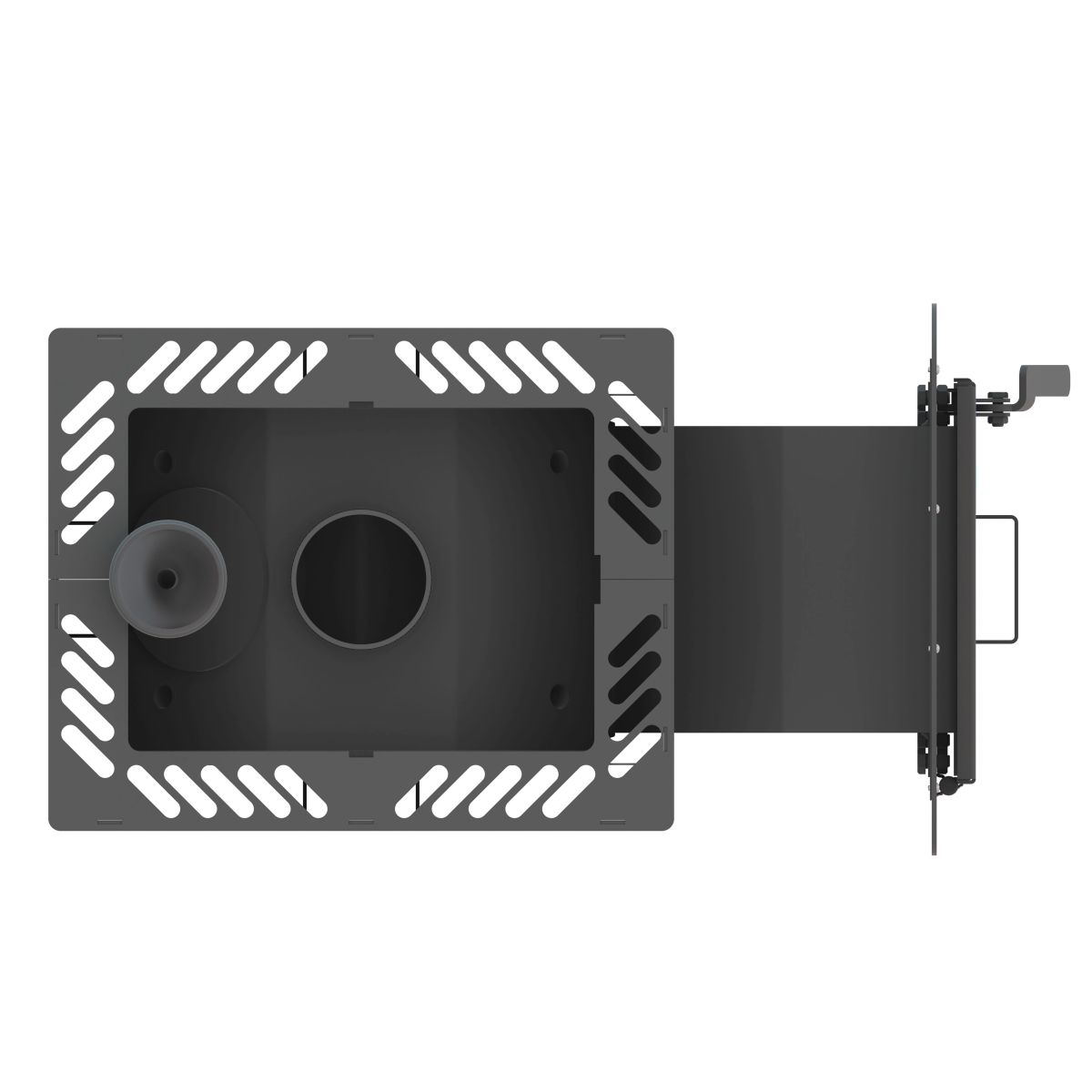 Банная печь с закрытой (сухой пар) и открытой каменками. Изготовлена из стали толщиной 5 мм., с конвекционным кожухом. Диаметр дымохода 115 мм.