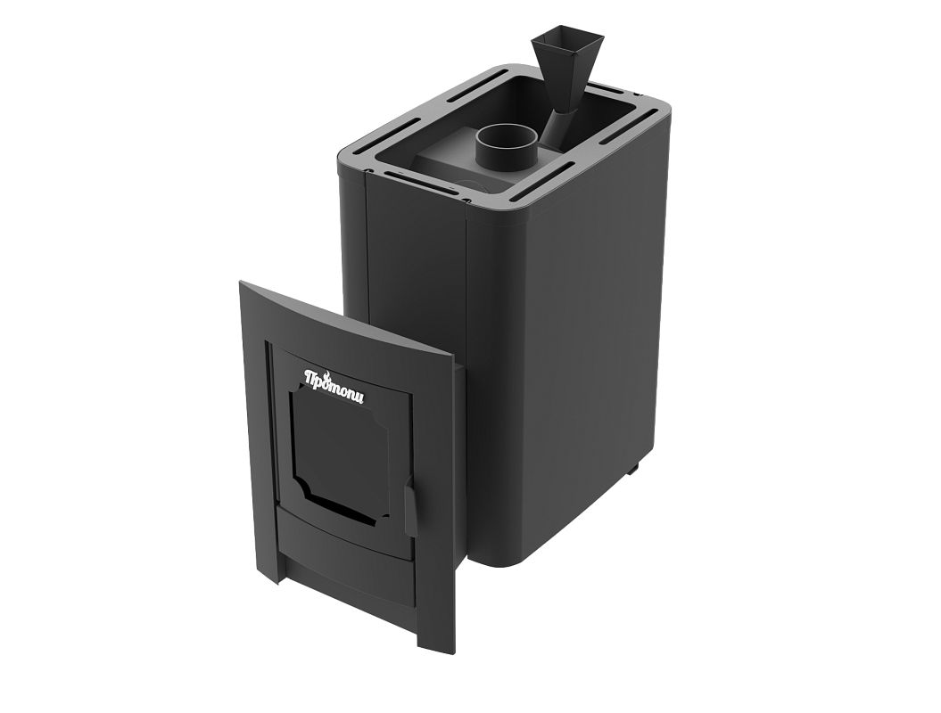 Топка и наружная решетка изготовлены из конструкционной стали. Наружные поверхности печи окрашены антикоррозионной термостойкой краской, выдерживающей воздействие высокой температуры - до +900 °С. Наружные поверхности корпуса окрашены антикоррозионной термостойкой краской, выдерживающей воздействие высокой температуры - до +900 °С. Печь быстро прогревает парильное отделение и производит легкий пар эффективнее, чем аналоги. Модель имеет удлиненный топливный канал, поэтому рассчитана на обслуживание из вспомогательного соседнего помещения (топочной).