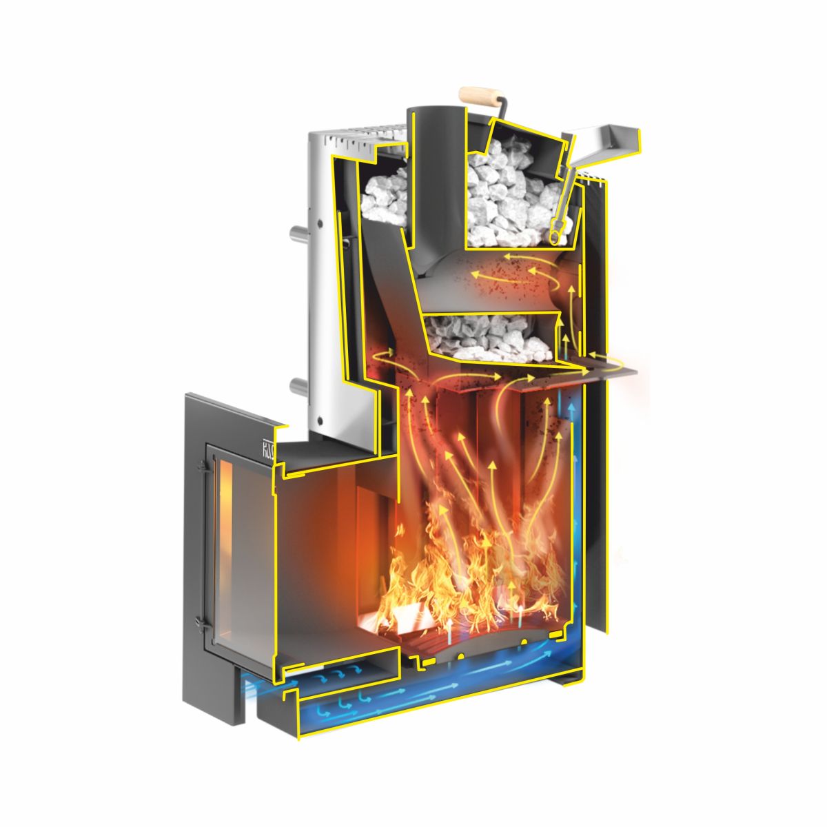 Печь для бани с закрытой каменкой, системой подачи воды и панорамной дверцей.Новая модель банной печи — это отличное сочетание цены и качества. Она обеспечивает мягкий пар, быстро прогревает парную и долго держит тепло.