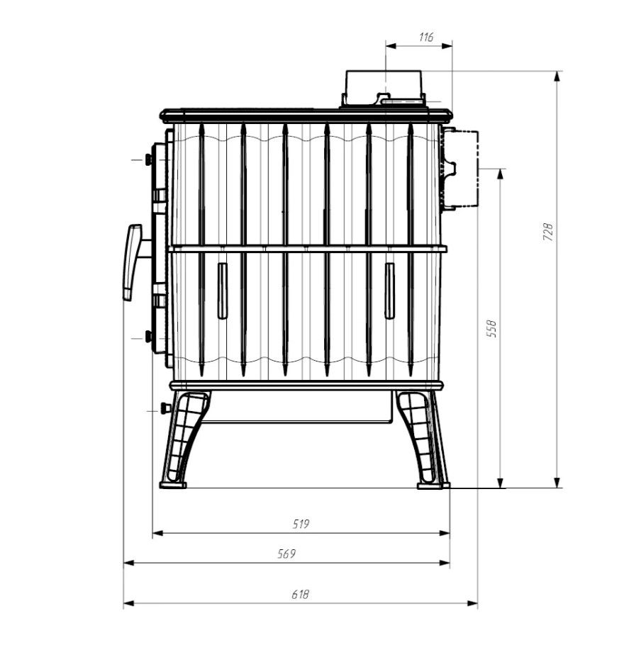 Диаметр дымохода 115мм (внутренний) / 130мм (внешний)