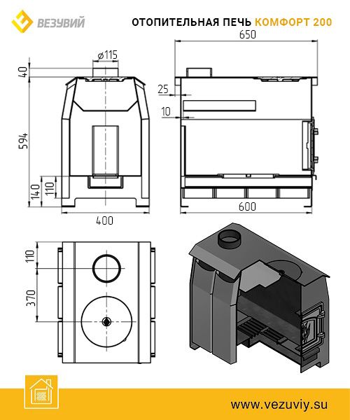 Читать все статьиПечь отопительная Везувий «Комфорт 200» (ДТ-3)