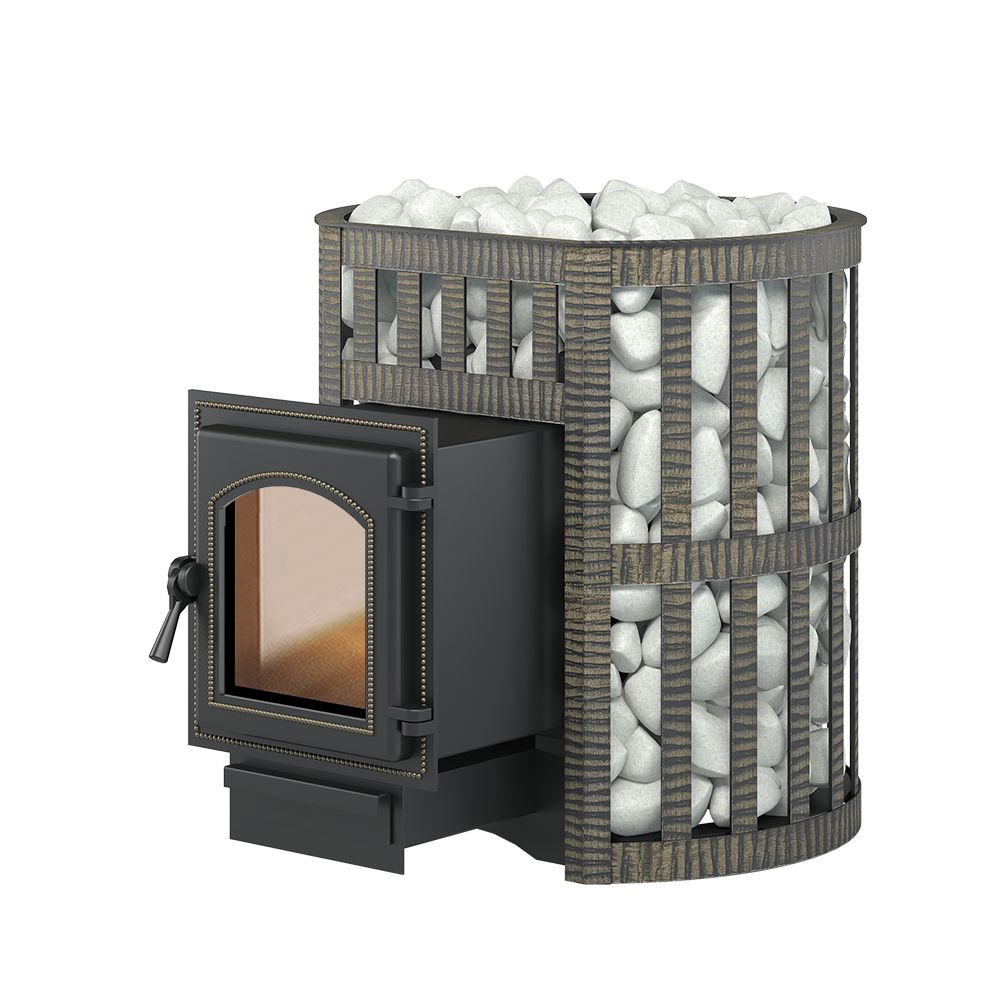 Банная чугунная печь Легенда Ковка 16 (270) укомплектована чугунной герметичной дверцей Везувий 270 с жаропрочным стеклом «SCHOTT ROBAX». Конвекционно-вентилируемый кожух "Ковка" изготовлен из металлической текстурированной полосы покрашенной термостойкой краской и покрытая патиной «Бронза».