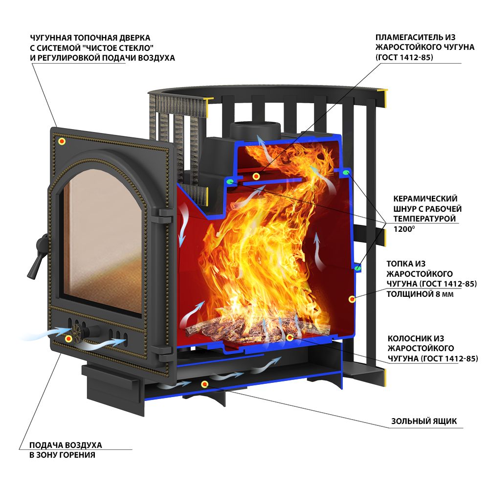 Материал топки: Жаростойкий чугун (ГОСТ 1412-85)