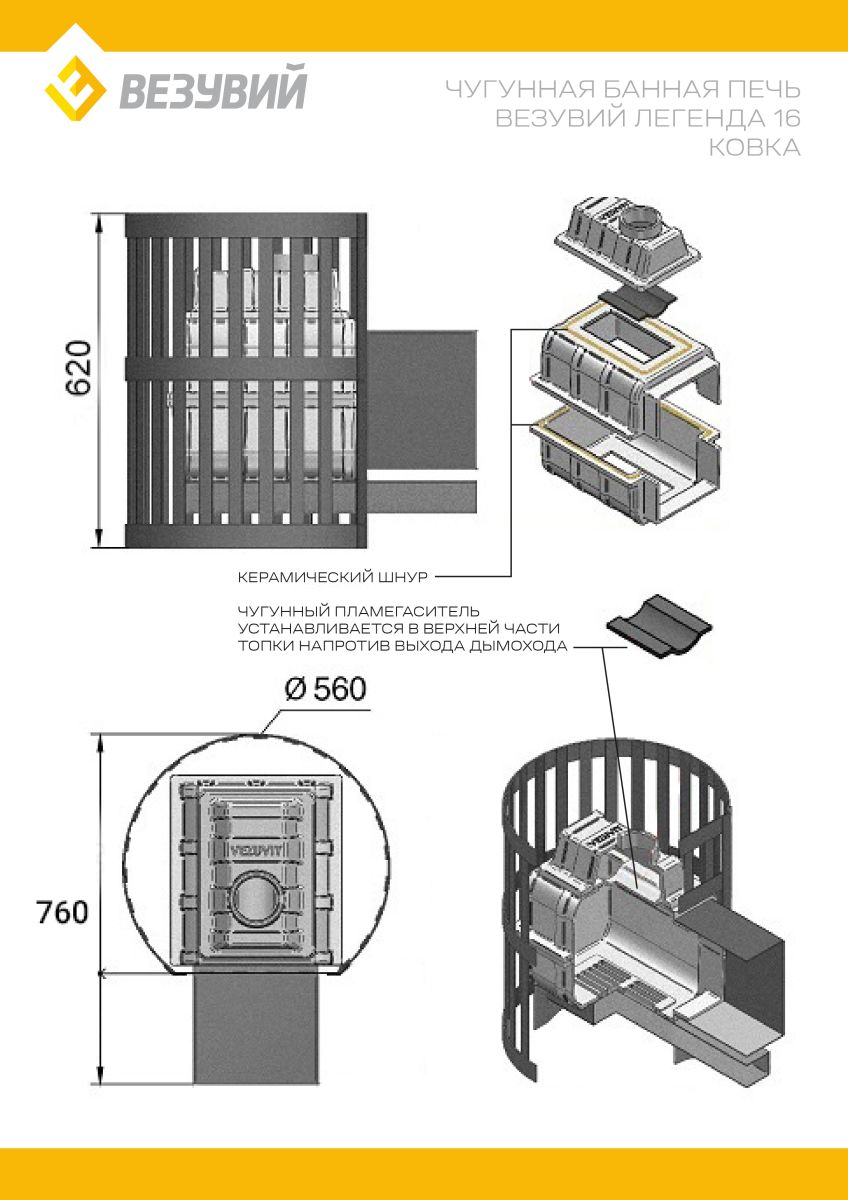 Печь ВЕЗУВИЙ Легенда Ковка 16 (270)