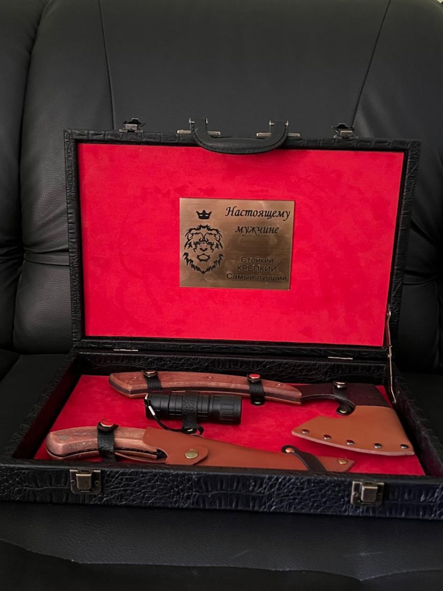 Читать все статьиПодарочный бокс «Лев»(топор,Сербский нож/красный велюр