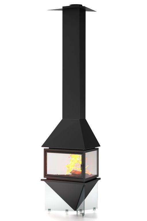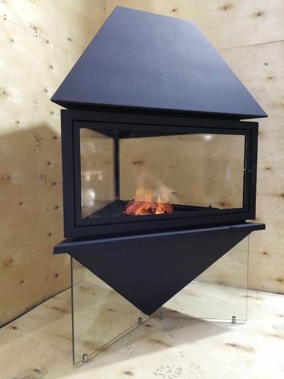 Центральный подвесной камин Delta OpenFire - современный камин оригинальной треугольной формы в стиле хай-тек, установленный на подставку из трёх стёкол. Основные черты данной модели - это броский, но при этом лаконичный, легкий дизайн.