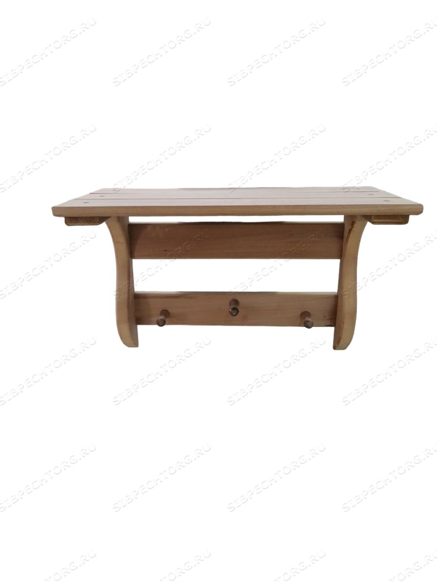 Полка-вешалка отличный и практичный банный аксесуар.Идеально вписывается в банный интерьер,а так же несет большое удобство в эксплуатации бани.Крепится на саморезы.