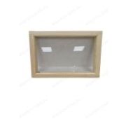 Диаметр внешней деревянной части 185мм. Крашеное металлическое основание толщиной 1мм с посадочной юбкой для защиты от попадания влаги под обшивку парильного помещения. Поворотный механизм из нержавеющего кольца со шпилькой и восьмиугольной заклепкой, защищающее изделие от проворота по оси.